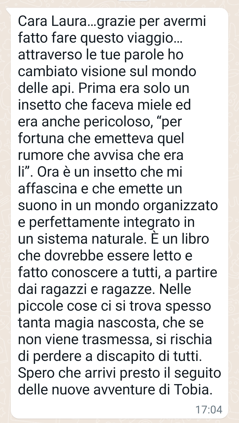 In conclusione, “Il viaggio di Tobia” è un romanzo che merita di essere letto per la sua capacità di toccare corde emotive profonde e per la sua scrittura coinvolgente. Laura Cavalli ha saputo creare una storia che non solo intrattiene, ma che lascia anche un segno duraturo nel cuore di chi la legge.